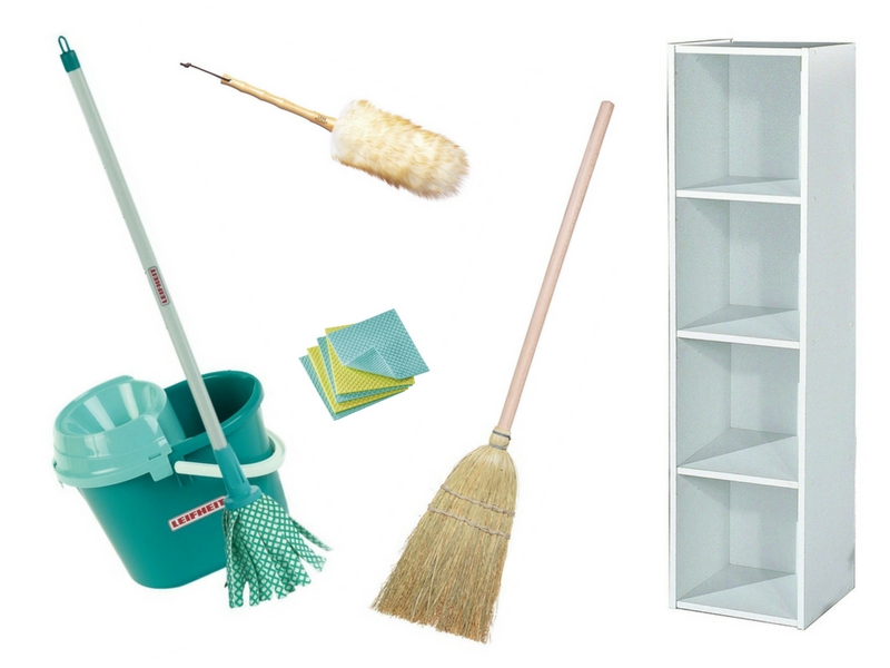 Dopo aver spolverato e scopato in terra è il momento di passare lo straccio, no? Noi abbiamo scelto di insegnare ai bimbi ad usare il mocio, più semplice e pratico (anche noi ormai usiamo solo il mocio, no?). Ce ne sono di bellissimi fatti apposta per bambini, come questo, perfetti perché in effetti quelli “da adulti” sono davvero grandi e difficili da maneggiare.