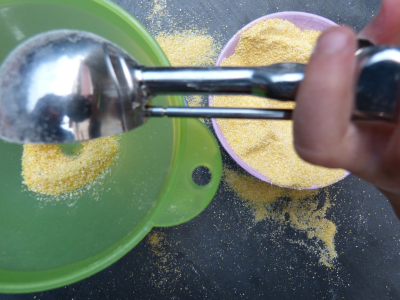 3. TRAVASI CON FARINA DI MAIS E CUCCHIAIO PER GELATI