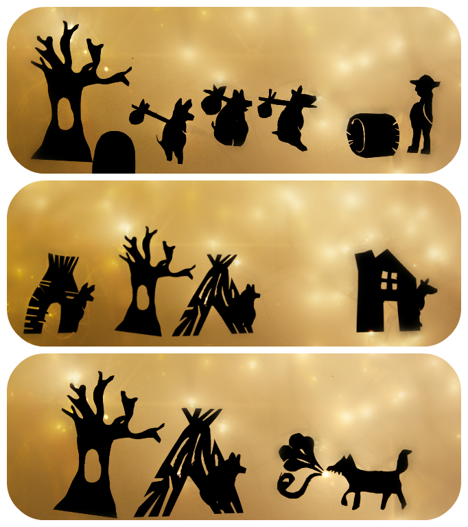 Ritagliando su dei cartoncini scuri una serie di silhouette con vari personaggi, oggetti e situazioni possiamo inventare insieme ai bambini delle storie, partendo da un elemento e aggiungendone sempre altri man mano che la storia si profila. È un semplice gioco di storytelling che stimola la creatività e il linguaggio e che grazie alla luce acquista un sacco di fascino!