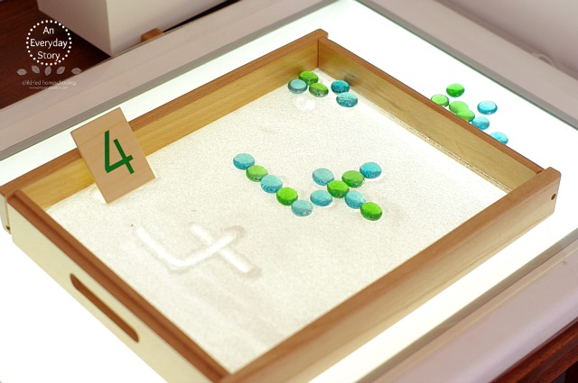 La trasparenza permette poi un utilizzo perfetto di sabbia, sale, farine e sassolini colorati. Non solo per giochi artistici: anche la matematica o lo studio delle lettere possono trovare sul tavolo luminoso la loro perfetta dimensione. Ad esempio, per ripassare i numeri e la loro scrittura i bimbi possono esercitarsi tracciandoli con le dita su del sale sparso sulla lavagna e sagomandoli con delle pietruzze. Idem per le lettere!