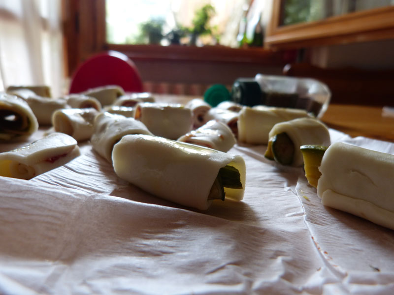 Facciamo lo stesso lavoro della precedente ricetta con del pesto vegetale. Io ho aggiunto del mopur avanzato tagliato a striscioline.