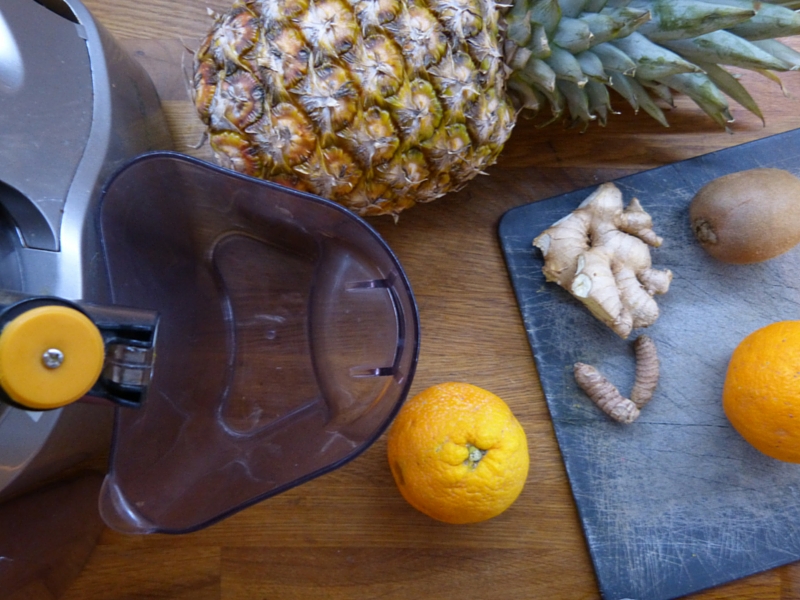 Inseriamo tutti i nostri ingredienti in Estraggo Pro e beviamo il succo vivo contro il reffreddore.
