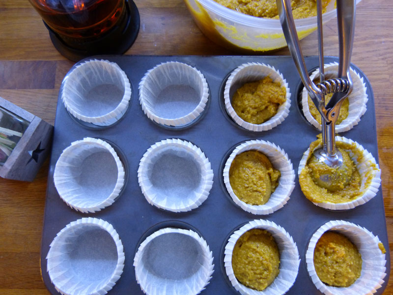 Peliamo le carote a pezzetti poi frulliamole e aggiungiamo lo sciroppo d'acero, il malto e l'olio. In un'altra ciotola mescoliamo insieme tutti gli altri ingredienti, quelli secchi, e infine uniamo il contenuto delle due ciotole. Prepariamo la teglia dei maffin inserendo i pirottini e inseriamo il composto. Questo travaso è davvero strepitoso per i bambini per cui tendenzialmente lascio fare a loro questo passaggio utilizzando un cucchiaio per servire il gelato così hanno anche la soddisfazione di "cliccare" per far scendere il composto. Cuociamo per 180° per 25-30 minuti. Attenzione che l'interno del muffin rimarrà sempre un po' umido in quanto la farina all'interno è poca, quindi la classica prova dello stuzzicadenti in questo caso non funziona!