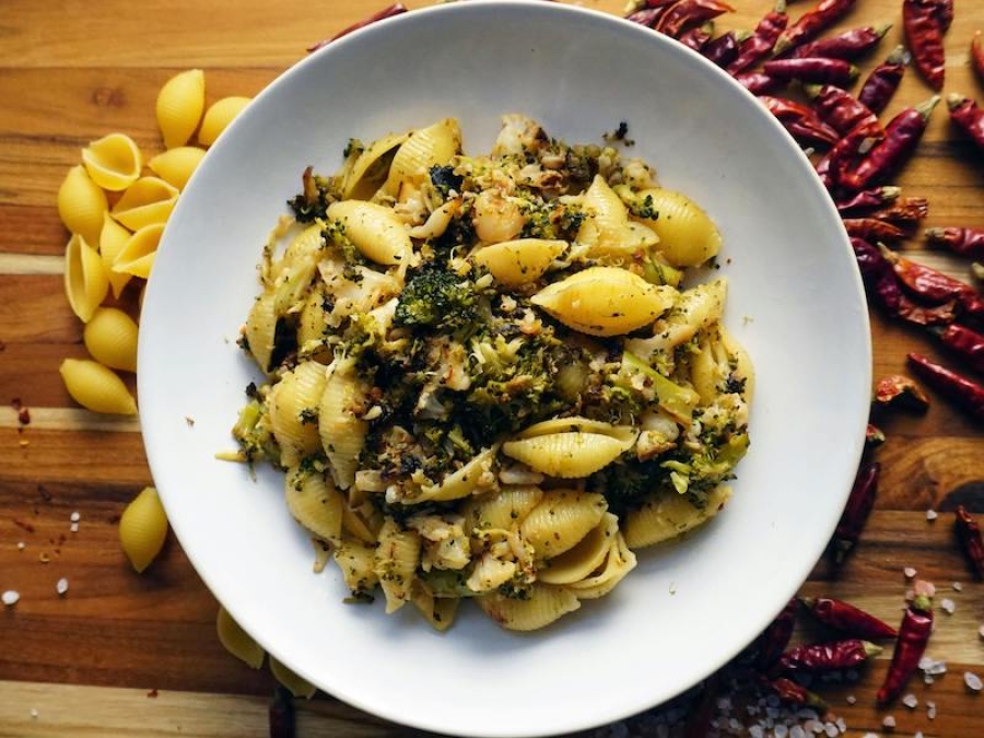 Pasta con cime di rapa, noci e peperoncino
