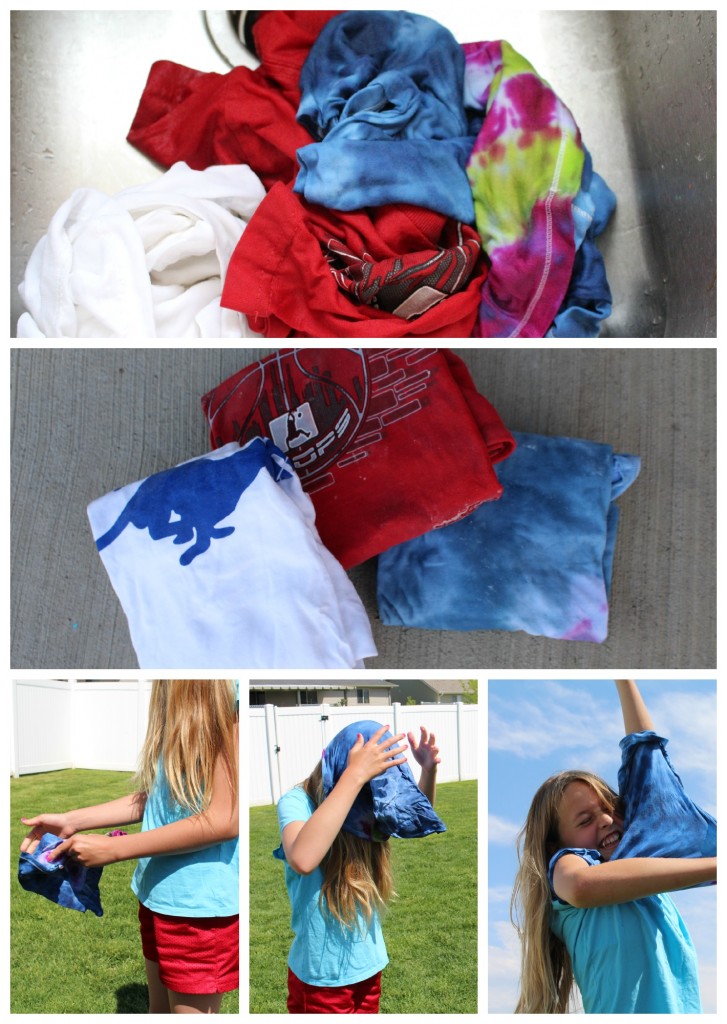 10. La gara con la maglietta ghiacciata: questa gara inizia quando i bimbi cominciano a infilarsi la maglietta (precedentemente bagnata e lasciata ghiacciare in freezer) - un'impresa ardua, dal momento che è tutta dura e scrocchiante! Vince chi riesce per primo a indossarla. Ma vincono un po' anche gli altri: il senso di freschezza è un premio per tutti.