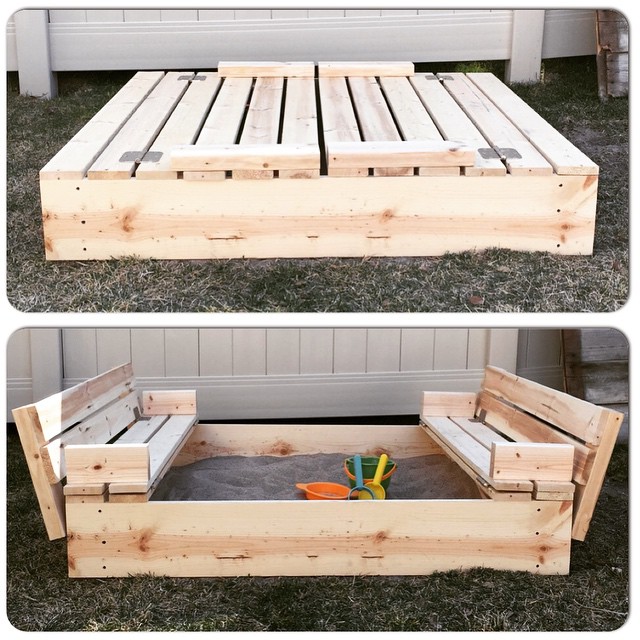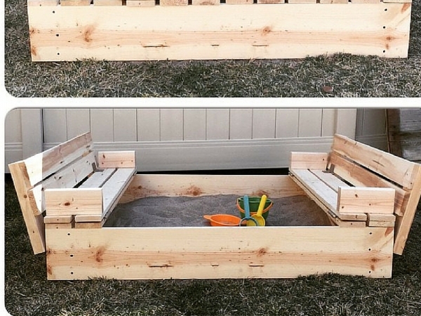 http://www.mrshappyhomemaker.com/diy-sandbox-with-fold-out-seats/