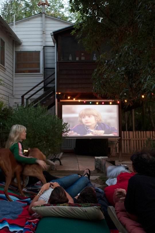 8. Bastano un telo, un videoproiettore, qualche cuscino e una ciotola di popcorn fatti in casa per trasformare il giardino in un cinema all'aperto, in un drive in senza automobile per passare serate estive uniche, rilassanti e per tutta la famiglia.