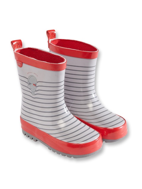- Più economici gli stivaletti da pioggia in caucciù stampato di Okaidi, azienda specializzata in babywear. La linguetta posteriore permette di infilarli al volo in maniera indipendente e la suola dentellata scongiura gli scivoloni!