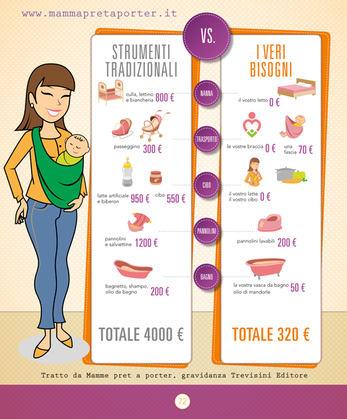 Quali sono i veri bisogni di una neomamma? La pubblicità ci dice che sono necessari 1000 oggetti e supporti. La famosa Zia Ignazia poi non può che dirci (appena le abbiamo comunicato il lieto evento): "Vedrai quanti soldi! Devi organizzarti bene!". E poi l'amica ci dirà: "Ma come, non hai ancora preso la vaschetta da bagno con riduttore, poggiatesta, poggiapiedi, postazione manicure e idromassaggio nel caso il bambino avesse bisogno di idromassaggiare il piede?".