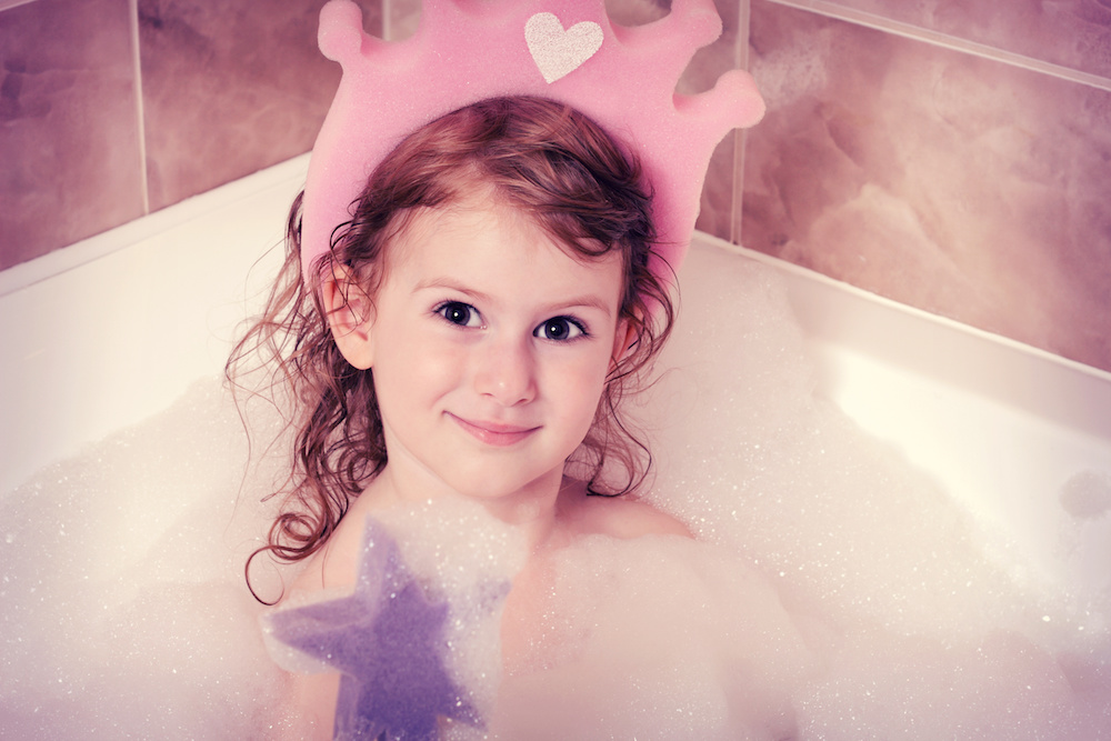 Con delle spugne abbastanza grandi e basic potrete ritagliare delle maschere o dei cerchietti per trasformare i bimbi in principi, principesse, re, supereroi o chiunque loro vogliano essere. Fateglieli indossare durante il bagnetto, dopodiché leggete una storia o inventatene una insieme, giocando un po’ alla recita.