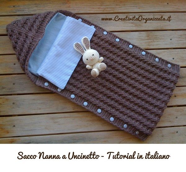 Ma il lavoro a maglia ci permette di fare anche qualcosa di diverso dal solito, qualcosa di davvero molto utile, differente dalle solite copertine per bambini: il sacco nanna.
