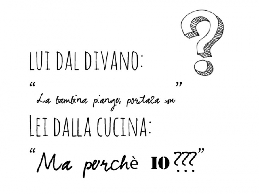 Proprio come mi viene da dire la stessa cosa quando il mio compagno, spaparanzato sul divano mi dice: "La bambina piange. Portala sù a dormire". COOOOSAAAAA???? E l'utero sarebbe mio quindi, nel senso che dopo che ho partorito sono un po' tutti ..zzi miei... OOk... con il papà di Virgi ci faccio i conti, ma con quelle freakkettone coetaneee di mia mamma, che andavano in giro a mostrare una specie di vagina con le mani alzate... Mi verrebbe da dire... Care zie luciane, ma che cosa avete combinato??? Adesso, non solo ci tocca andare a lavorare... si perché a chi, della mia generazione, verrebbe da dire orgogliosamente "Faccio la casalinga???!" come minimo ti vergogni e ti senti in dovere di inventarti una balla... Tipo, parafrasando Nanni Moretti "Faccio cose e vedo gente" almeno dì che fai la "Pr", oppure che stai facendo un corso di stancil per poi avviare un'attività.... Ma per carità la casalinga noooo!!!! Eppure, quante di noi, se non hanno la possibilità di pagare una "signora delle pulizie" si occupa di stiro, ammiro, pavimento, spolvero, lavatrici... wonderwoman, altro che conquiste femministe... Io lo so perché parlo con le persone (appunto, vedo gente!), poi c'è qualcuna che dice "Il mio lui mi aiuta", abbiamo gli stessi ruoli, ma a me qualche dubbio viene. Anche perché le volte che in momenti di estati paradisiaca Angelo ha fatto una lavatrice, ha messo tutto insieme come andando in lavanderia... Va beh, che sarà mai, lana, colorati, sintetici... che roba è? Così poi i maglioni sono serviti per vestire le bambole di Virginia... Fortunata lei! Insomma, se agli uomini succede per le faccende domestiche sono come con i figli, che sono una protuberanza del loro io inesauribile, il bimbo come minimo deve riconoscere le esigenze del papà e non viceversa. Forse qualche uomo "diverso" esiste, qualcuno che abbia la sensibilità per comprendere le difficoltà di donne/mamme e bambini, ma a me proprio finora non ne sono capitati... Ecco perché chiedo alla zia luciana, femminista attivista, che prima di me si è incazzata per le stesse cose che sollevo ora... Ma dove ci troviamo? Che passi avanti abbiamo fatto genere femminile tutto??? Le statistiche ci fanno un bel pernacchione e molte di noi, non io, Dio me ne scampi, piuttosto che litigare, dicono... "Tranquillo, faccio tutto io..." Oppure, sarebbe meglio dire, prima di trovare un figlio complessato ed un guardaroba da riassortire, un "faccio io..." scappa pure a noi donne che se non altro proviamo a fare valere qualche vago diritto umano! Ma in fondo, questo genere maschile, tanto figlio delle proprie madri da diventarne il prodotto marchiato a fuoco, che sforzi fa per comprendere che avere più tempo per stare a casa (come succede a molte in maternità) non significa fare meno... Avere più tempo per rilassarsi... Perché per loro, quando siamo a casa siamo con un cocktail che ci facciamo le unghie... ebbene, se anche fosse, che ci scappi il tempo per una manicure, non è certo una colpa come molti fanno credere... e quando torni a casa stanco... non sei stato in miniera o ai lavori forzati ed una figlia ce l'hai tu come ce l'ho io!!! Capito?!?!
