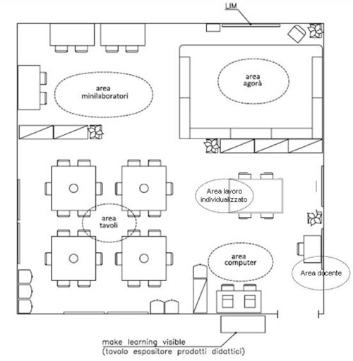 Non solo: le aule hanno una pianta definita, studiata ad hoc per un apprendimento completo, responsabile, autonomo e comunitario.