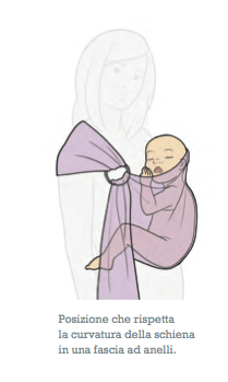 Mi preme precisare, onde evitare confusione, che quando parliamo di "curvatura a C" non intendiamo la "posizione a C", che è la postura totalmente innaturale assunta dal bambino in un portabebè quando (ad esempio, portato non correttamente nella cosiddetta "posizione a culla orizzontale") il suo corpo si chiude e il mento arriva a premere sul petto, schiacciandone potenzialmente il diaframma. Questa postura viene anche detta "a banana" e può essere molto pericolosa.