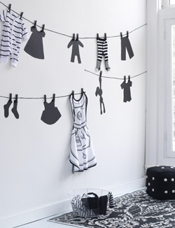 - Di concetto simile è il filo stendibiancheria in vinile, materiale perfetto perché opaco e molto d’effetto. Rispetto alla prima immagine questa è più decorativa e di bellezza. E in effetti bella lo è davvero!