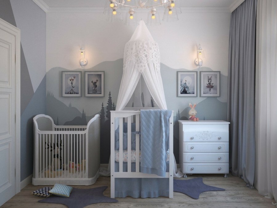 Ci sono diversi modi per scegliere il colore giusto. Puoi utilizzare il classico blu e rosa per un bambino o una bambina. In questo caso, meglio scegliere tonalità tenui, oppure optare per una imbiancatura originale: scegli un blu o rosa acceso per una parete lasciando il resto bianco.
