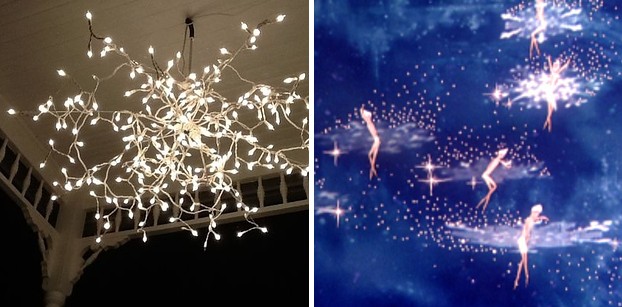 - E, applicando le lucine ad un ombrello rotto, potrete creare una meravigliosa Fantasia di fatine ispirata all'omonimo cartone Disney: sembrerà che la polvere magica stia per cadere da un momento all'altro in cameretta, infondendo in tutti i pensieri felici che le fate ci insegnano a coltivare.
