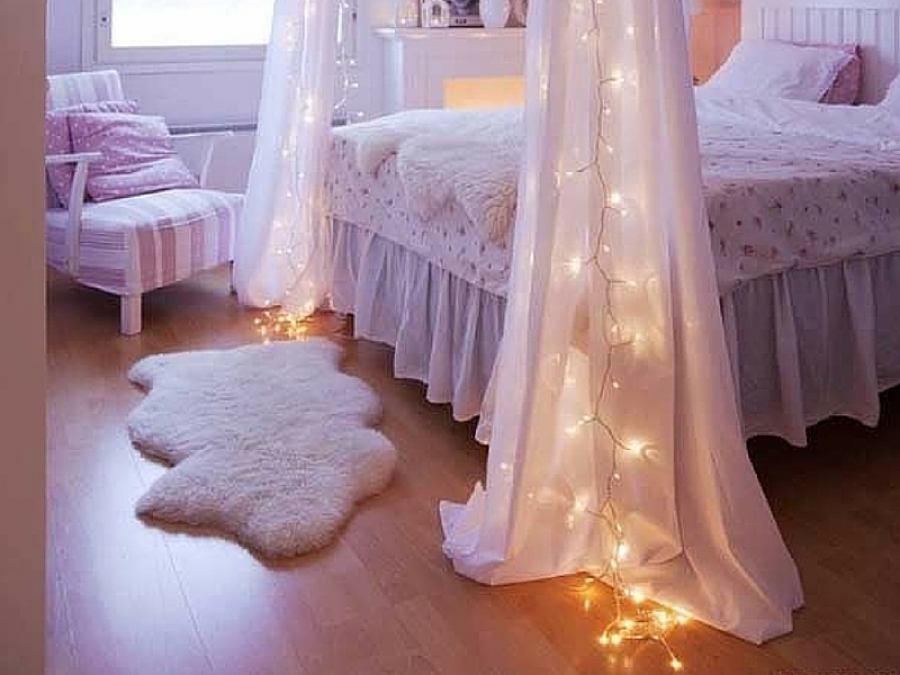- Un telo e delle lucine possono creare con semplicità un ambiente fantastico: dietro al lenzuolo possono vivere tantissime fatine che fanno compagnia ai bimbi addormentati!