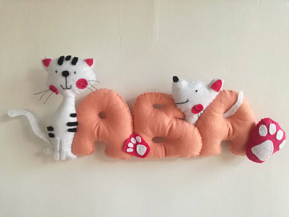 Deliziose sono poi le scritte personalizzate in stoffa. Il nome del bambino in questo caso diventa un peluche tenero e morbidoso, che accoglie in cameretta portando tantissima simpatia e senso di confort. Su Etsy le possiamo trovare qui, nel negozio “Fatto da Desy”.