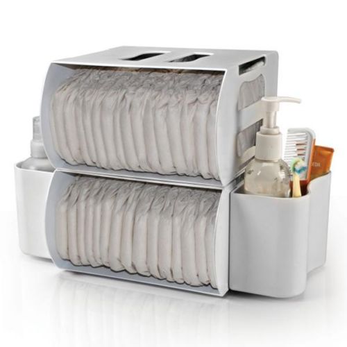Partiamo da questo organizer per fasciatoio. Trovato anche su amazon, quindi questa volta non è necessario districarsi con le lingue straniere. E’ molto spazioso, vi trovano posto una sessantina di pannolini taglia 3 e rimane un sacco di spazio per creme, cremine, detergenti, salviette, ecc, ecc. Il costo è decisamente abbordabile, si parla di circa 24,50 euro, spedizione compresa. L’accortezza da utilizzare è probabilmente quella di assicurarlo bene al fasciatoio perché una volta pieno acquista un certo peso.