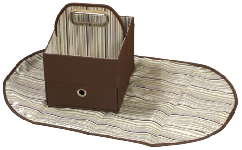 Il brand americano JJCole invece propone un coordinato cestino e materassino. Il cestino ha il vantaggio di poter essere spostato agilmente da una stanza all’altra e trovo che sia utile quando non si ha uno spazio prettamente dedicato al cambio come, ad esempio, a casa dei nonni. Lo trovate su ebay.co.uk ad un costo di circa 38 euro.
