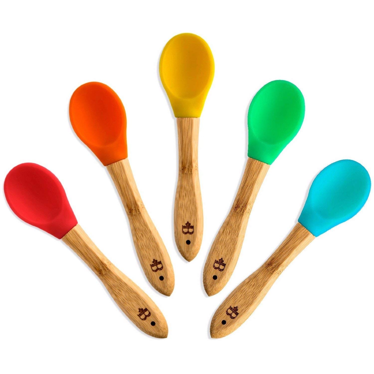 Leggerissimi e pratici, sono cucchiaini progettati apposta per i primi cibi solidi dei bambini, con manico in bambù e punta in silicone morbida, in modo da non graffiare le gengive dei bimbi. Ergonomici, non hanno angoli vivi e sono quindi perfetti sia per imboccare sia per la fase in cui i bambini cominciano a maneggiare le posate da soli.