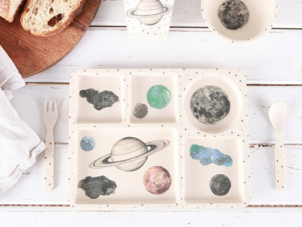 Dal design super scandi e davvero elegante, il set per lo svezzamento per bambini che amano i pianeti è del marchio Love Mae (e lo trovate su LoveTheSign). È composto al 100% da materie prime naturali e il bambù che lo compone è di primissima qualità, atossico, privo di ftalati, antimacchia e lavabile in lavastoviglie.
